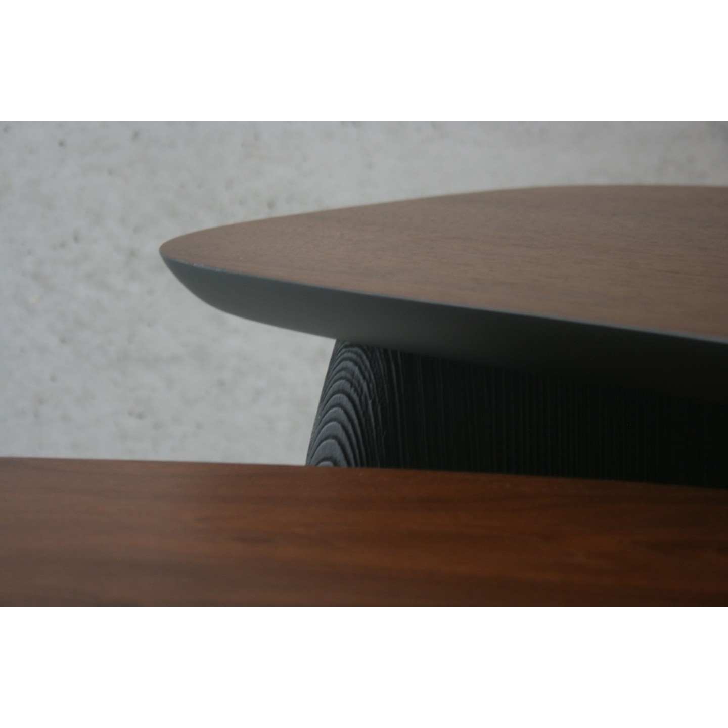 Avec son design organique et ses lignes épurées, la table basse Khroma incarne l’élégance contemporaine. Son plateau proposé en différentes essences naturelles offre une chaleur raffinée, subtilement contrastée par des pieds en bois massif au fini noir sablé, pour un jeu de textures harmonieux.