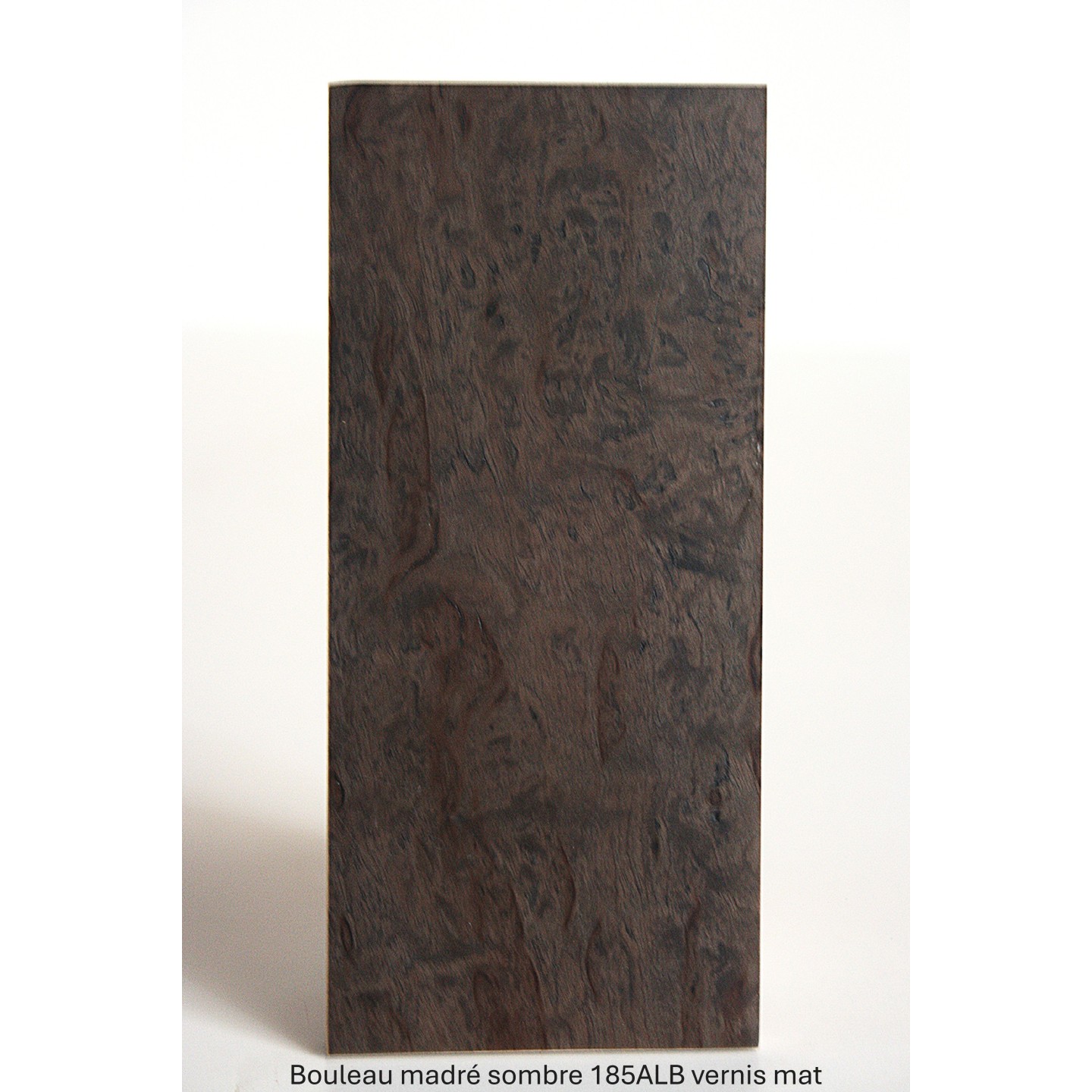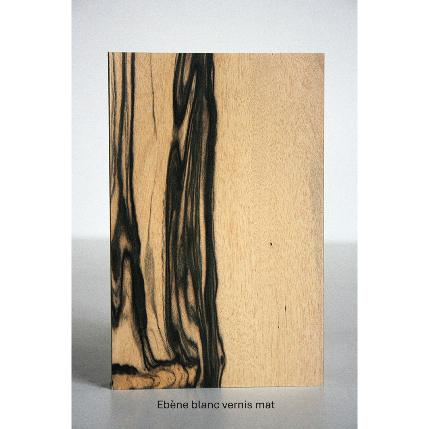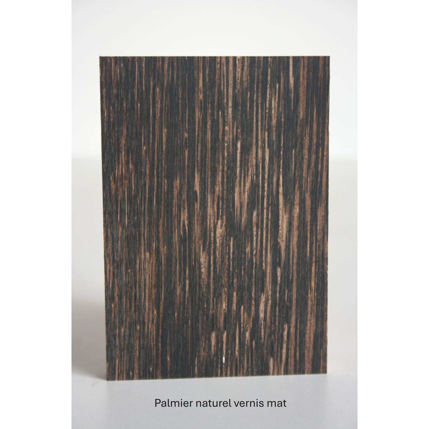 – Plateau : placage proposé en différentes essences. Finition mate sur le dessus et laqué noir en dessous.